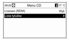 Wybieranie utworu na płycie Audio CD: wybrać pozycję Lista tytułów, a następnie wybrać żądany utwór.