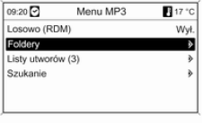 Nacisnąć pokrętło MENU, aby otworzyć odpowiednie menu MP3.
