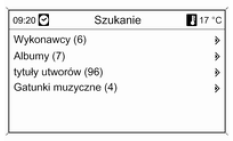 Aby wyświetlić menu z dodatkowymi opcjami wyszukiwania i wyboru utworu: wybrać pozycję Szukanie.