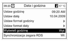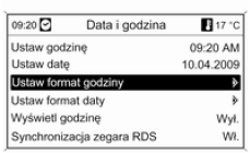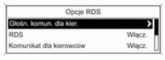 Wybrać pozycję Ustawienia radia, Opcje RDS i Głośn. komun. dla kier..