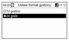 Nacisnąć pokrętło MENU, aby wybrać wyświetloną opcję i otworzyć dane podmenu.