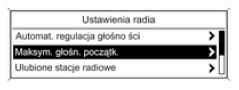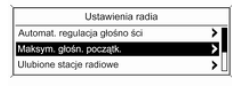 Wybrać pozycję Ustawienia radia, a następnie Maksym. głośn. początk..