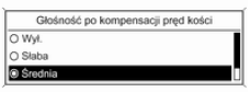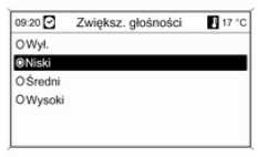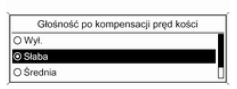 W wyświetlonym menu funkcję dopasowywania głośności do prędkości jazdy można wyłączyć bądź też wybrać stopień dostosowywania głośności.