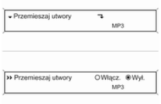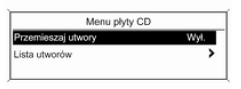 Aby otworzyć podmenu z opcjami wyboru utworu, nacisnąć pokrętło MENU.