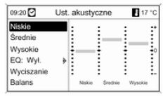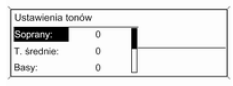 W menu ustawień barwy dźwięku można zdefiniować oddzielną charakterystykę barwy dźwięku dla każdego zakresu częstotliwości radiowych i każdego źródła dźwięku.
