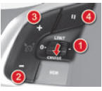 Włączenie regulatora prędkości odbywa się ręcznie: minimalna prędkość samochodu to 40 km/h oraz włączony: