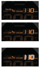 Powrót do zaprogramowanej prędkości, poprzez wymuszone lub niewymuszone zwolnienie, automatycznie kasuje miganie.