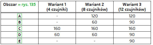 Rys. 135 Obszary skanowania i zasięgu czujników / przycisk systemowy (wariant