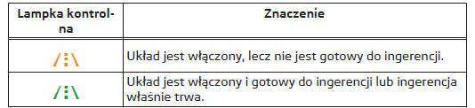 Automatyczna ingerencja układu działa tylko wtedy, gdy spełnione są następujące podstawowe warunki.