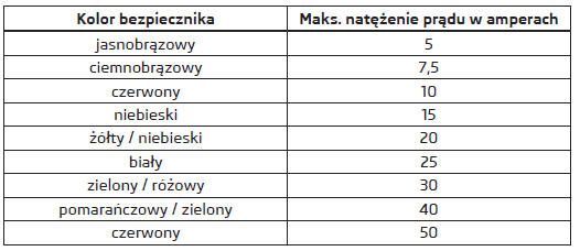 Przed wymianą bezpiecznika należy wyłączyć zapłon i odpowiednie odbiorniki.