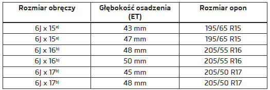 Opony i obręcze kół, przeznaczone do Państwa samochodu, są podane w dokumentacji samochodu.